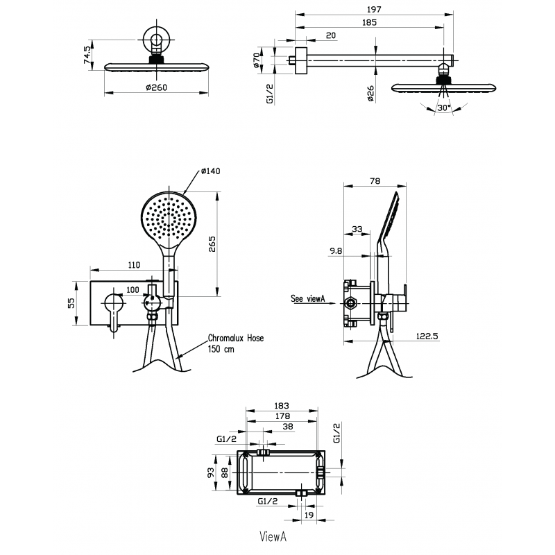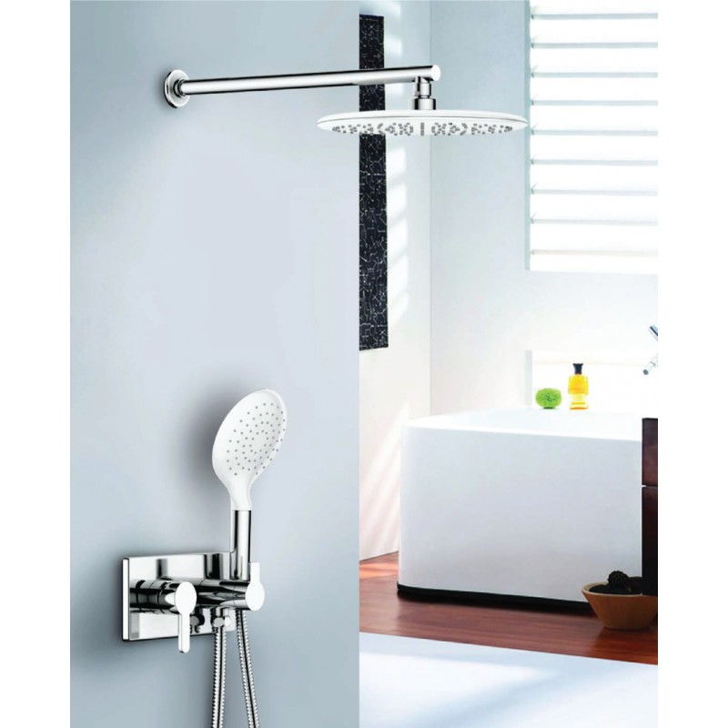 خلاط دش دفن بالطاسة والسماعة كومبوبوكس كروم سارديزين يتكون من: – سماعة تويست الترا وايت ٣ نظام ١٤٠ مم أبيض – مخرج علوى ٤٠٠ مم نصف بوصة – طاسة متحركة الترا وايت ٢٦٠ مم أبيض – حامل ثابت للسماعة – محول سيراميك من الطاسة إلى السماعة – خرطوم كرومالوكس ١٫٥ م (ضد الالتفاف) – جسم خلاط دش دفن كومبو بوكس – وش خلاط كومبو بوكس دفن مستطيل