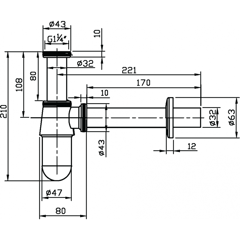 سيفون حوض بوصة و ربـع بدون طابق سارديزاين