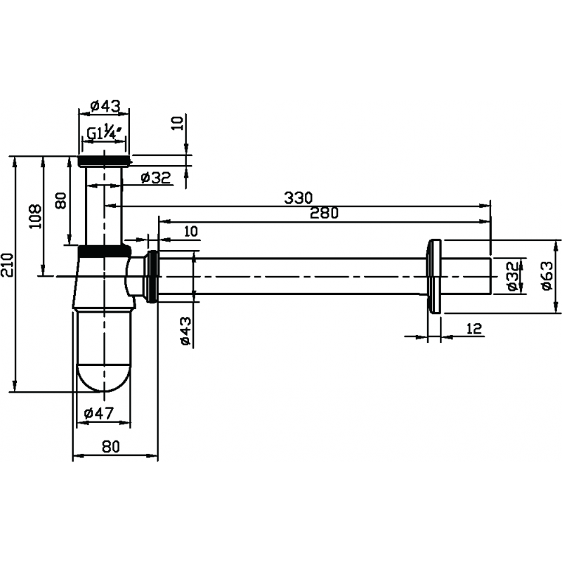 سيفون حوض بوصة و ربـع بدون طابق ولد 30سم سارديزاين